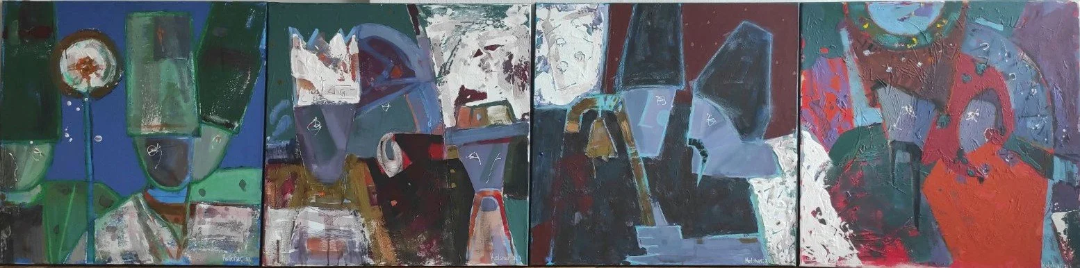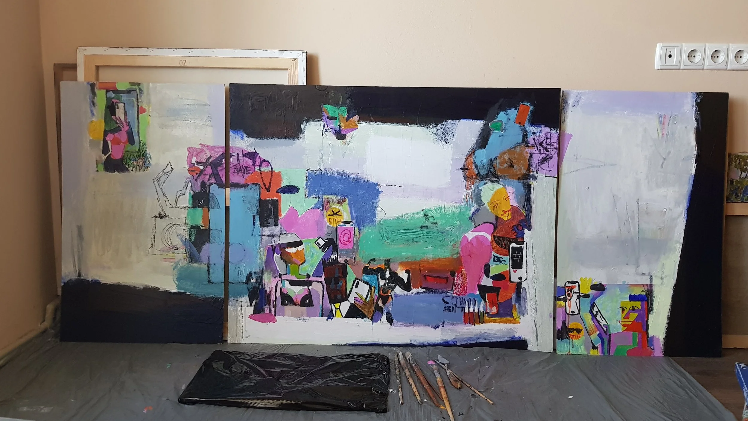 Юрій Шикула «Еміграція» 2022,(квадриптих), полотно, мішана техніка, 90х 440. Магістр. Керівник заслужений художник України, доцент Людмила Корж-Радько.