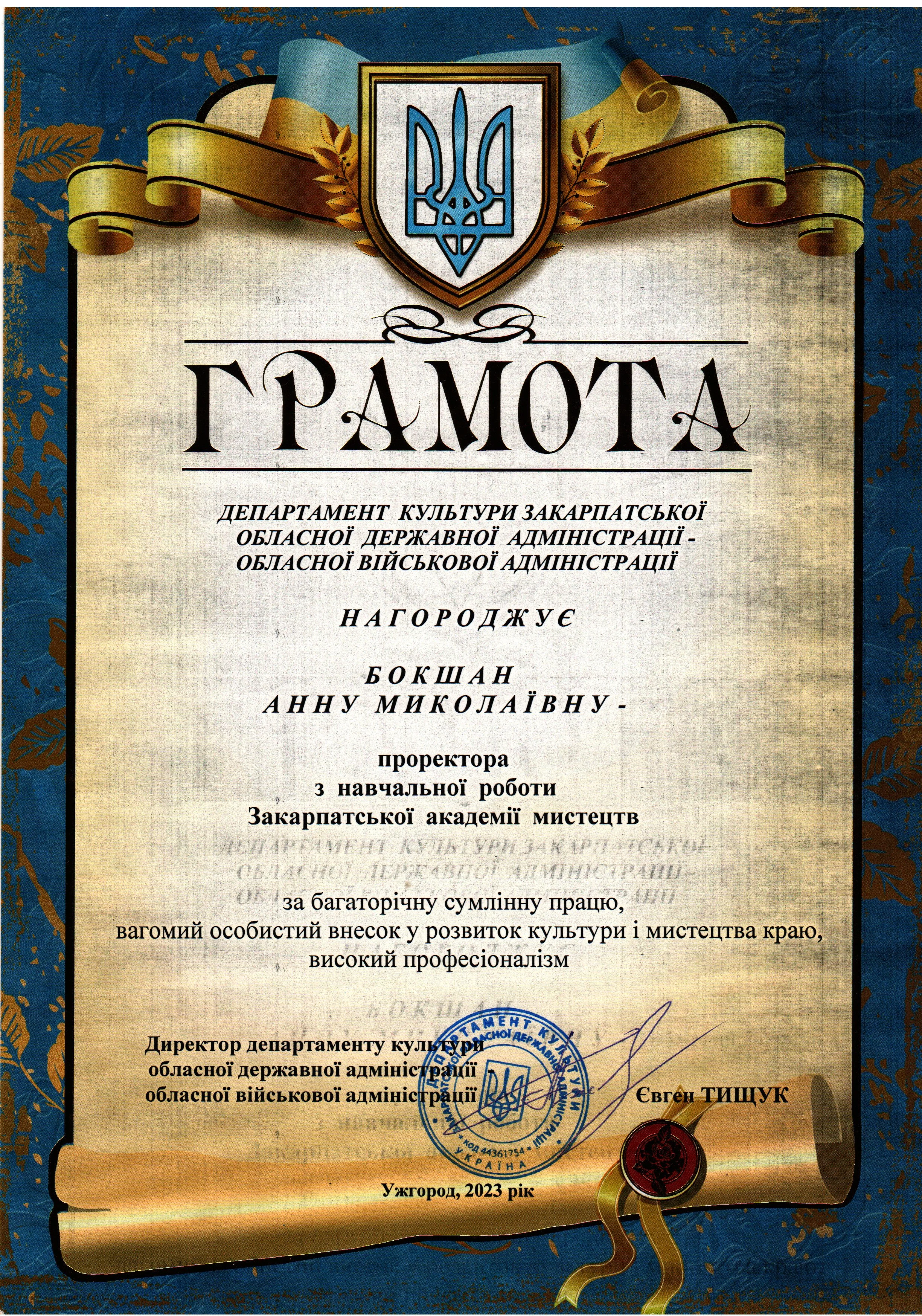 Посада: проректорка з навчальної роботи Закарпатської академії мистецтв.